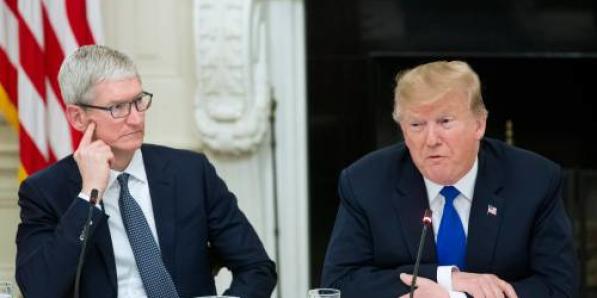 Nieuws Nieuws Apple-topman legt Trump gevolg van importheffingen uit Apple-topman Tim Cook heeft de Amerikaanse president Donald Trump uitgelegd dat Apple door de Amerikaanse importheffingen op Chinese producten er qua concurrentiepositie op achteruit gaat. Grote tegenstrever Samsung heeft daar immers geen last van. Trump liet weten dat Cook een beklijvend pleidooi had gehouden. "Ik denk erover na."