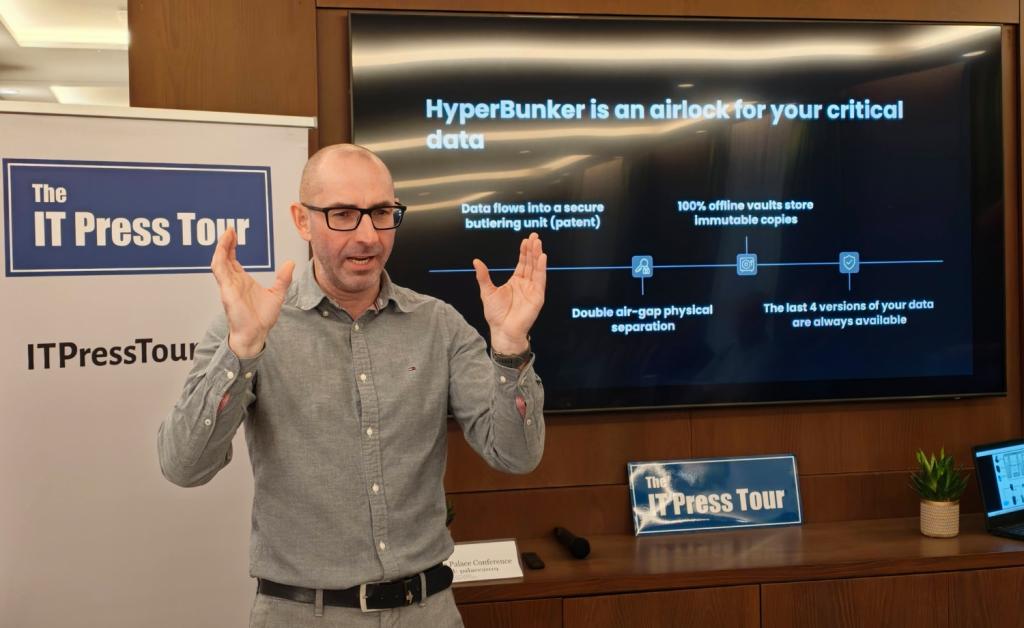 Beide bedrijven vertegenwoordigen een nieuwe Europese golf van ‘deep tech’ die de oplossing niet zoekt in nog slimmere AI-detectie, maar in onwrikbare natuurkunde: fysieke scheiding en onveranderlijke materie. Hyperbunker benadert het probleem niet vanuit cybersecurity, maar vanuit data recovery. Hun oplossing is een fysiek apparaat dat fungeert als een ‘offline kluis in een online wereld’. Het concept is gebouwd rondom het idee dat aanvallers credentials (inloggegevens) stelen. ‘De slechtste plek om je tegen ransomware te beschermen is de cloud’, aldus Kirm. ‘Cloud-systemen zijn gebaseerd op credentials en API’s. Hebben aanvallers die, dan hebben ze alles.’
