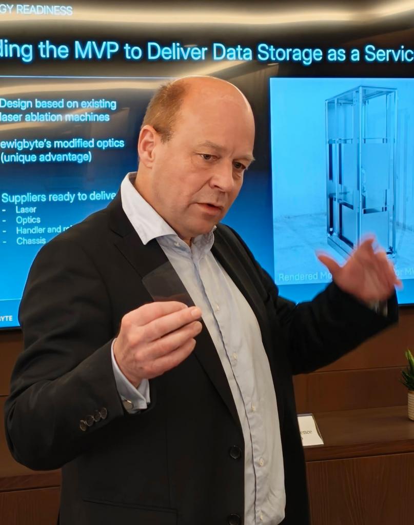 Terwijl Hyperbunker de toegang tot de data fysiek afsluit, kijkt Ewigbyte naar de drager zelf. Steffen Klewitz, medeoprichter van Ewigbyte, ziet een fundamenteel probleem in de huidige opslagtechnologieën. Hij stelt dat de ‘Wet van Moore’ in de opslagindustrie tegen zijn limieten aanloopt door de fysieke grootte van de atomaire structuren. De industrie blijft proberen de density, zeg maar de datadichtheid te verhogen, wat leidt tot complexere en kwetsbaardere systemen.